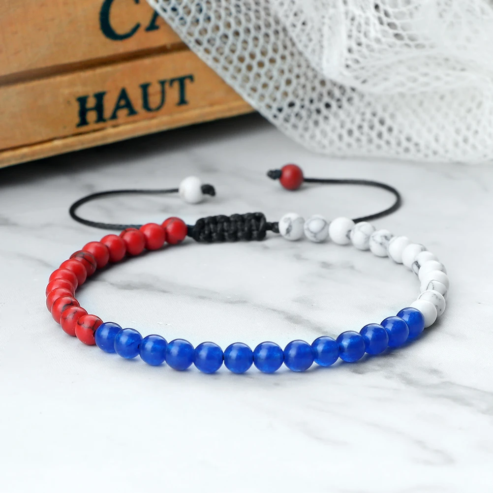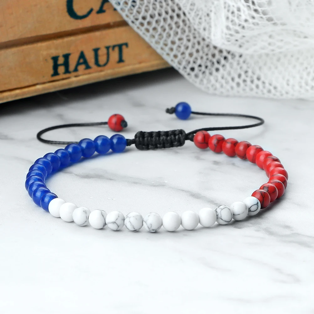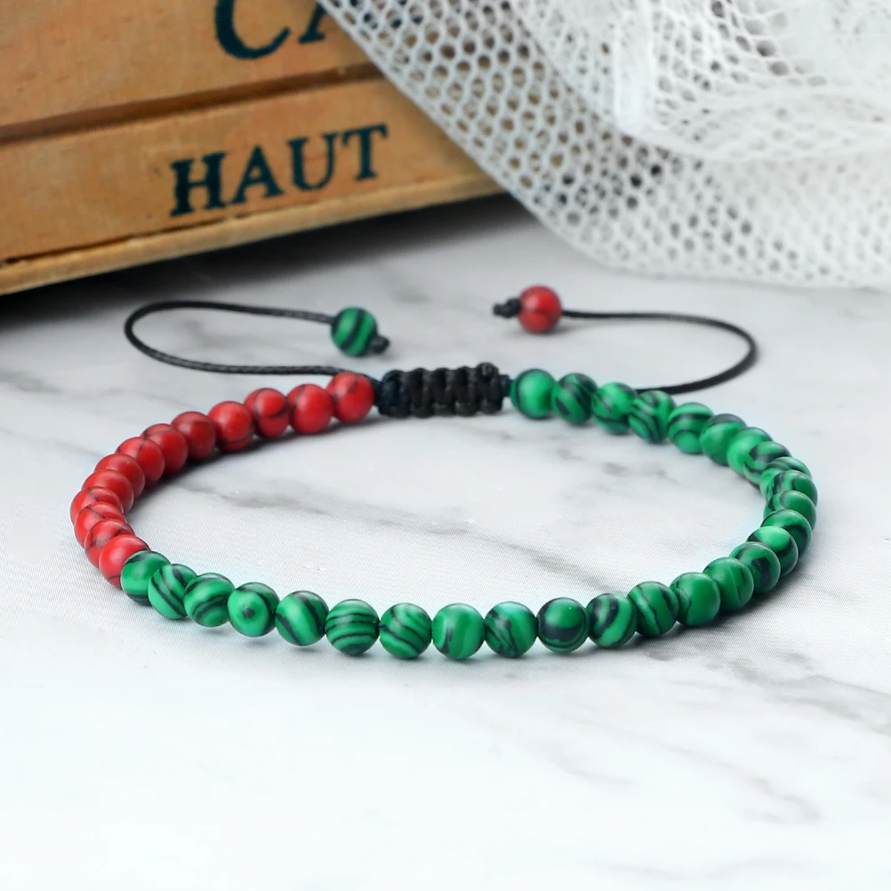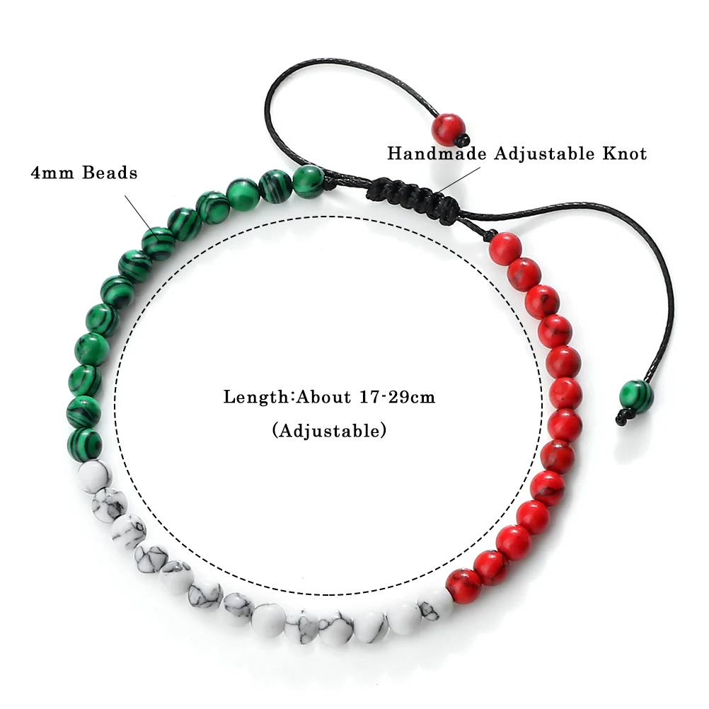 Trendy Palestine Flag Color Natural Stone Beads Bracelets for Women Men Adjustable Asian Countries Woven Bracelet Jewelry Friend